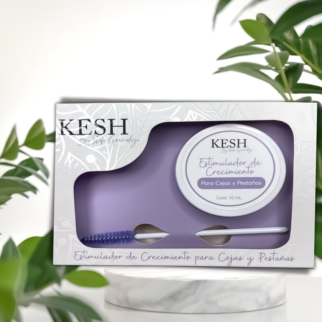 Es una fórmula innovadora que ofrece un cóctel de aminoácidos e ingredientes que nutren los vellos, evitan el debilitamiento de los folículos y estimulan el crecimiento de las cejas y pestañas, gracias al alga roja que potencia el crecimiento del vello. Esta crema contiene vitamina B7 y vitamina B5 para mantener saludable la raíz, aumentar la resistencia del vello, haciendo lucir unas cejas y pestañas más abundantes, largas y brillantes.Una fórmula única y exclusiva de Kesh, que fortalecen los folículos pilosos y estimulan notablemente el crecimiento del vello, brindando unas cejas y pestañas largas, muy abundantes, pobladas, fuertes y brillantes, es una formula amigable con tu piel y tus ojos. Las cejas y las pestañas le dan muchísima vida al rostro por eso es muy importante cuidarlas y estimular su crecimiento con productos de alta calidad que no vayan a generar efectos indeseados.